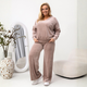 Bluza cu decolteu în V și pantalonii cu talie elastică creează un echilibru perfect între relaxare și rafinament.