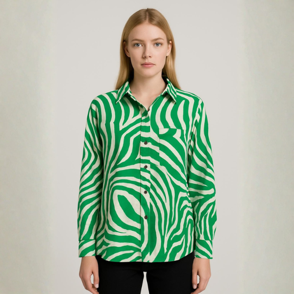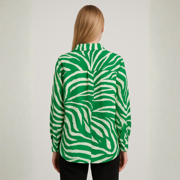 Împrospătează-ți garderoba cu Cămașa Green Wave, o piesă modernă și plină de energie, ideală pentru zilele în care vrei să atragi privirile printr-un look proaspăt și sofisticat. Imprimeul abstract în nuanțe vibrante de verde oferă un aer fresh, iar croiala lejeră asigură confortul pe tot parcursul zilei.