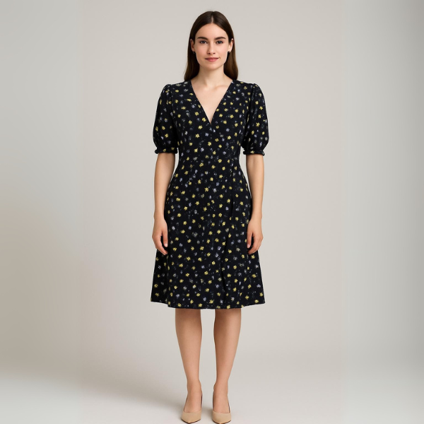 Detalii: Realizata dintr-un material fin si lejer. Rochita se inchide cu nasturi in fata si are un elastic lejer pentru evidentierea taliei