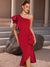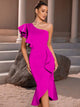 Rochie midi, eleganta, accesorizata cu volane pe un umar si in talie. Materialul este calitativ si accentueaza formele corpului. Rochia este potrivita pentru cele mai importante evenimente din viata ta, nunta, botez, petreceri de neuitat.