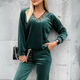 - Versatilitate: Setul include un top cu decolteu în V și pantaloni cu talie elastică, concepuți pentru a oferi libertate maximă de mișcare.