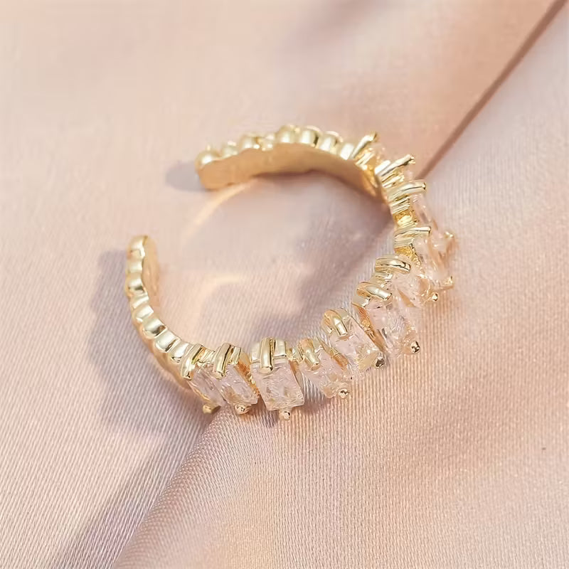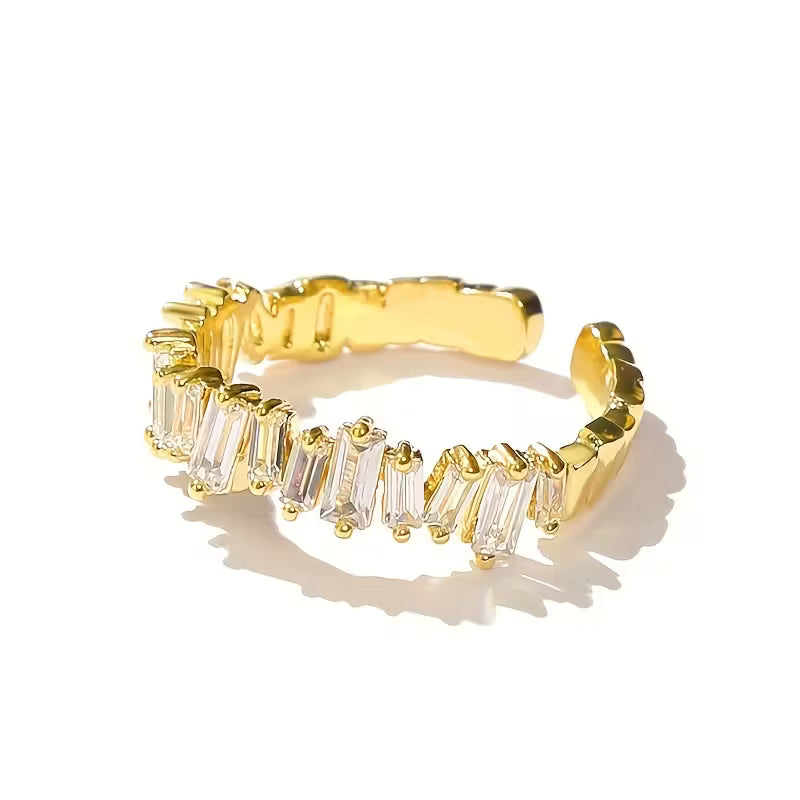 Un inel statement, dar păstrat într-o linie elegantă. Modelul open (deschis) are o formă ușor ondulată, cu aspect modern, iar detaliul central – zirconiul cubic rectangular – adaugă exact câtă strălucire trebuie, fără să fie încărcat.