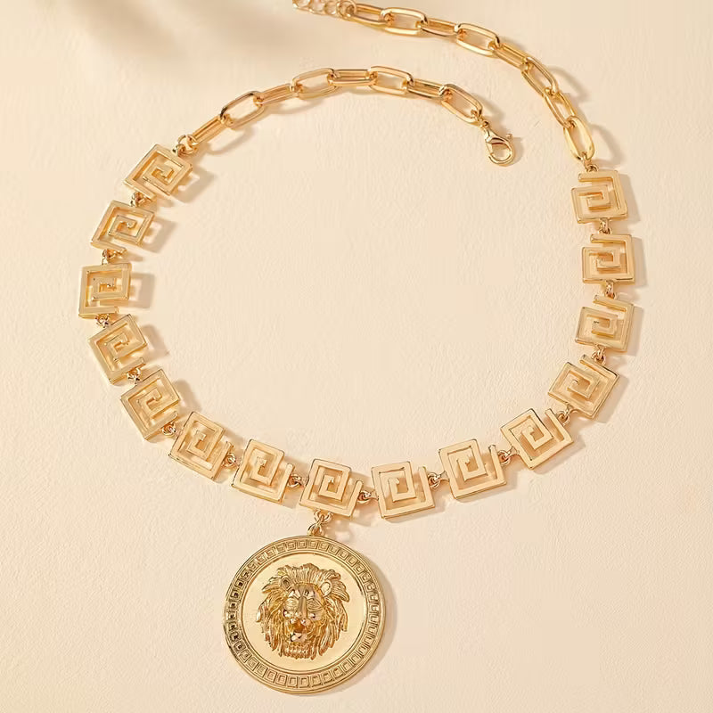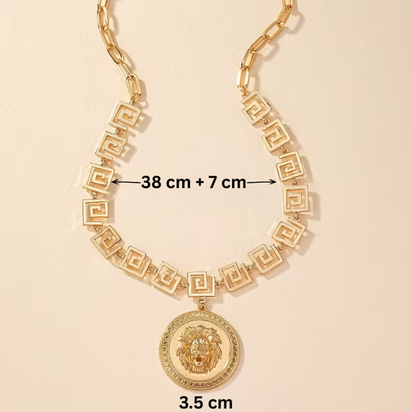 Colier cu pandantiv Cap de Leu – stil geometric, statement