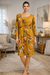 Alege o rochie care îți oferă confort și un look curat. Rochia florală galben are croială dreaptă, lungime midi și mâneci trei sferturi. Materialul este moale și elastic. O porți ușor, întreaga zi.
