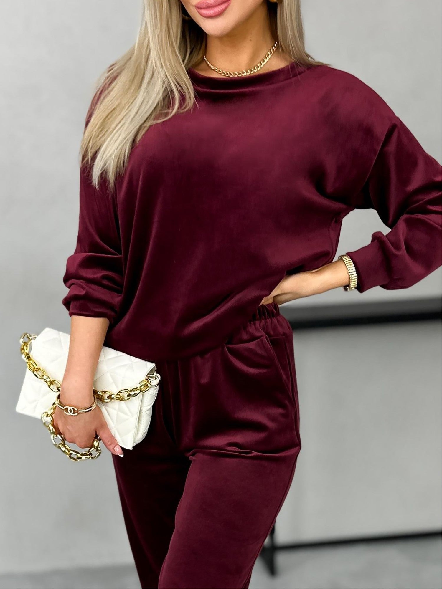 - Stil Simplu și Elegant: Designul minimalist și decolteul rotund fac din acest trening o piesă versatilă, ușor de asortat cu alte articole vestimentare.